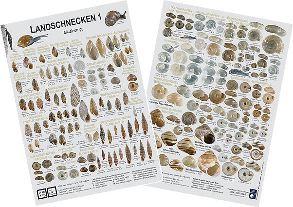 130 Arten von gehäusetragenden Landschnecken - fast alle Arten Mitteleuropas. (c Cismar, 2. Aufl., 2007) Fertig für Exkursionen ca. 21 x 29,7 cm |